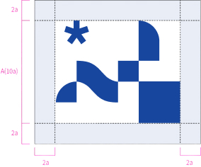 심벌마크의 재생은 원칙적으로 컴퓨터 데이터를 사용해야 한다. 컴퓨터 출력이 불가능한 대형크기의 경우에는 본 항에 제시된 그리드에 준하여 정확히 작도해야 한다. 최소공간규정은 심벌마크 사용 시 다른 요소로부터 시각적 침해를 받지 않도록 최소한의 공간 영역을 설정해 놓은것이다.